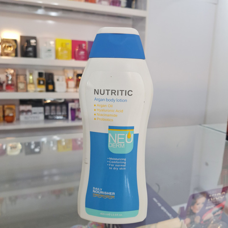 متاسفانه این کالا در حال حاضر موجود نیست. میتوانید از طریق لیست بالای صفحه، از محصولات مشابه این کالا دیدن نمایید.لوسیون بدن نوتریتیک آرگان نئودرم برای پوست های نرمال تا خشک طراحی شده است و به واسطه ترکیبات منحصر به فردی نظیر روغن آرگان، اسید هیالورونیک، نیاسینامید و پروبیوتیک، با نفوذ به لایه های زیرین پوست، نرمی و لطافت را افزایش می دهد و با حفظ رطوبت، پوست را آبرسانی و تغذیه می کند.